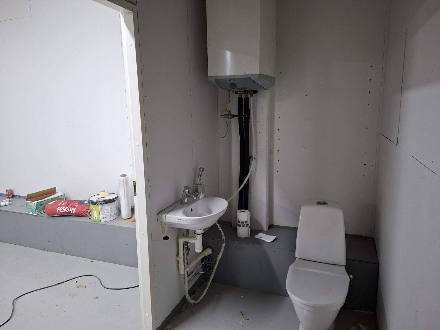Tilassa uusi pariovi, uusi wc, ilmalämpöpumppu, voimavirta.