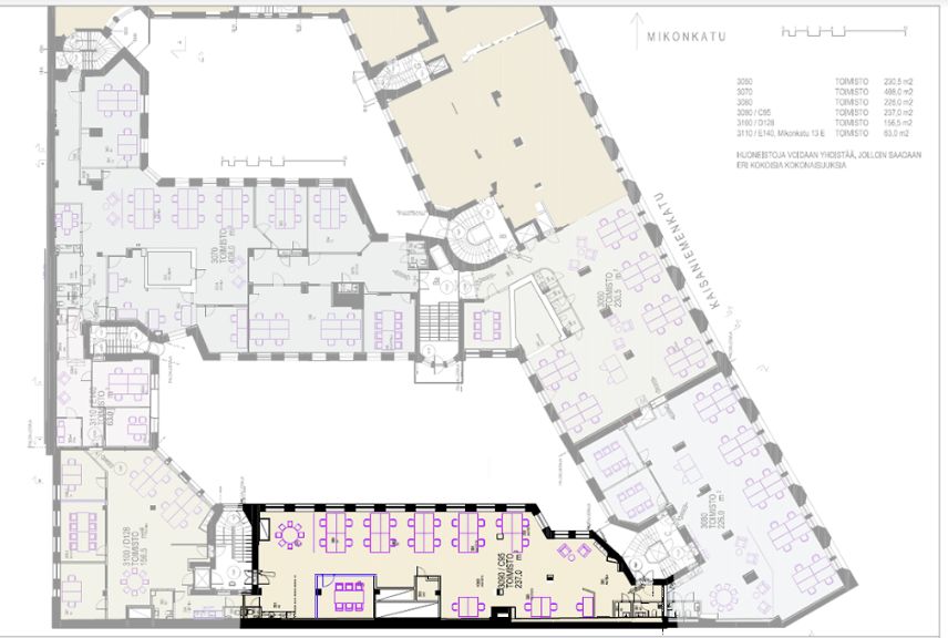Kyseinen tila on kooltaan 237 m², ja se sijaitsee kiinteistön 3. kerroksessa. Tila on remontoitu. Vapautuminen 1.1.2027. Kuvat ovat yleiskuvia kiinteistön tiloista.