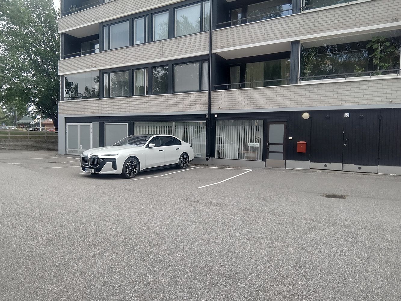 Tilan edessä olevat 5 parkkipaikkaa ovat kuuluneet taloyhtiön käytännön mukaan tilan käyttöön ilman autopaikkamaksua. Näille 5 paikalle on helppo toteuttaa sähköauton latauspisteet huoneiston keskuksen kautta. Huoneistoon kuuluu yksi tolpallinen autopaikka (N:o 7).