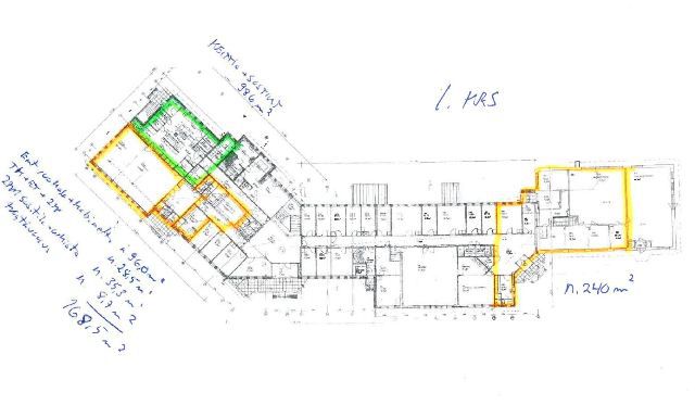 1. krs. 240 m2 toimisto/ neuvottelutilaa, vuokra 11,- €/m2+ alv.