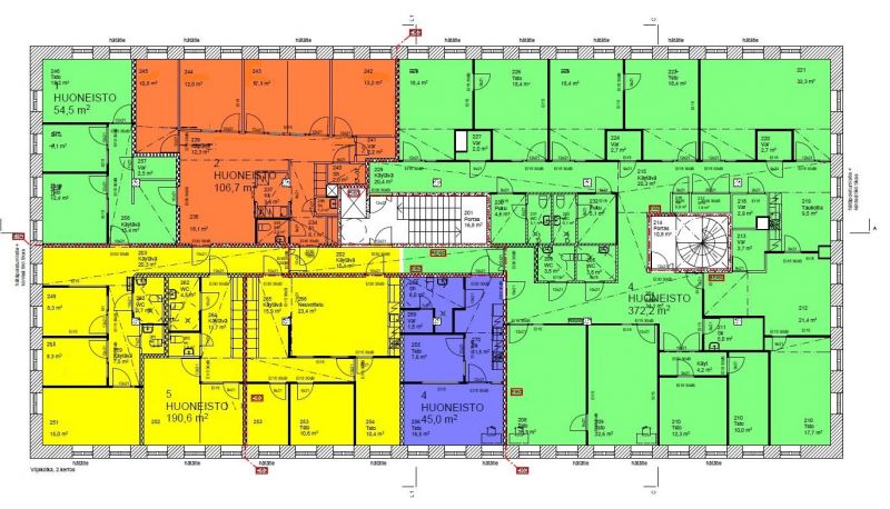 2. kerroksessa on n 769 m2 toimistohuoneisto, neuvottelu- ja sosiaalitiloineen.