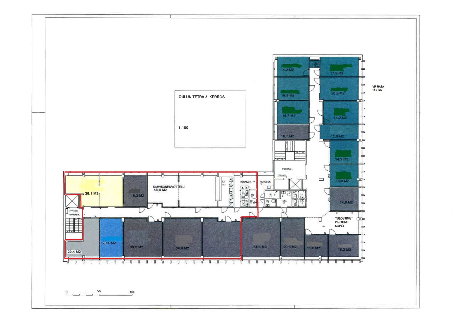 3. krs. toimistotiloissa on koneellinen tulo- ja