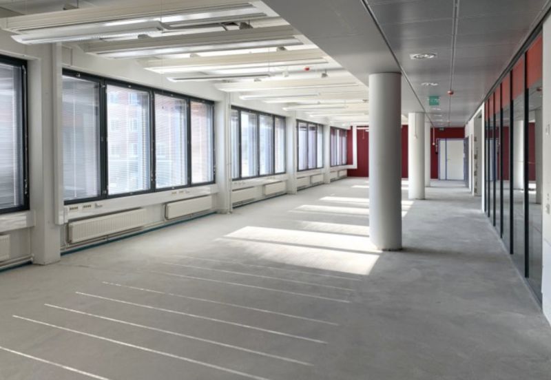 Toisen kerroksen, juuri remontoitu avotoimistotila. Tilan ikkunat pohjoiseen kadulle ja etelään sisäpihalle.