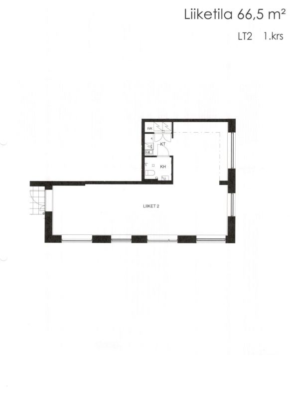 Vuokrattavana katutason uutta liiketilaa.Tila on avonainen, ja siihen kuuluu oma keittiöpiste ja wc-tila. Liiketilaan on kulku sekä porrashuoneen kautta että suoraan kadulta. Liiketila varustetaan jäähdytyksellä. Ei sovellu ravintolakäyttöön.