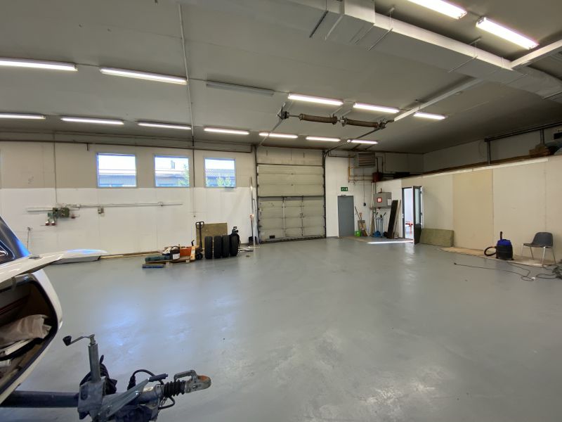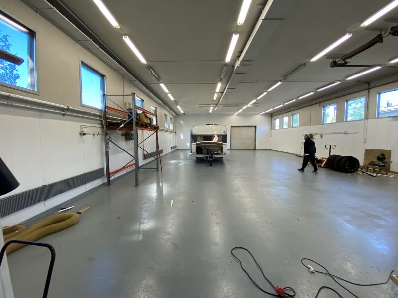 Muuta: Korkeus n. 4,1 m Nosto-ovi n. 3,2 x 3,5 m. Asfaltoitu, aidattu piha. Kaukolämpö. Ilmalämpöpumppu.