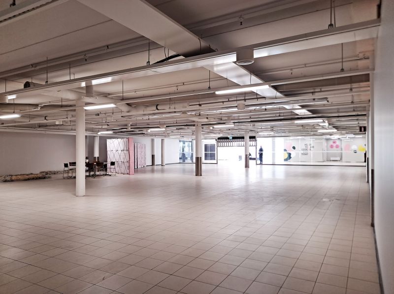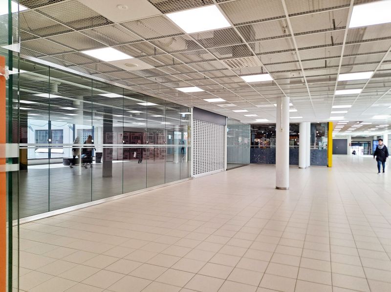 Myymälätilan käytävän puoleinen seinä on kokonaan lasia, joten näyteikkunatilaa riittää! Vuokralaisella on käytössään myös sosiaalitilat.
