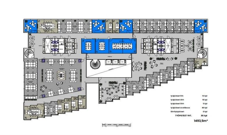 Vuokrattavana tehokasta, modernia ja valoisaa kombitoimistotilaa, johon saa työpisteet tilaratkaisusta riippuen noin 75-110 henkilölle. Tilat räätälöidään vuokralaisen toiveiden mukaan.
