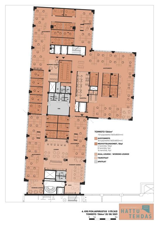 Toimisto on kooltaan 1364 m2 ja se sijaitsee kiinteistön 6. kerroksessa. Toimistossa on työhuoneita, neuvottelutiloja sekä omat keittiö- ja wc-tilat. Tila on mahdollista remontoida vuokralaisen tarpeiden mukaan ja jakaa jopa kolmelle käyttäjälle. Toimistosta on merinäköala.