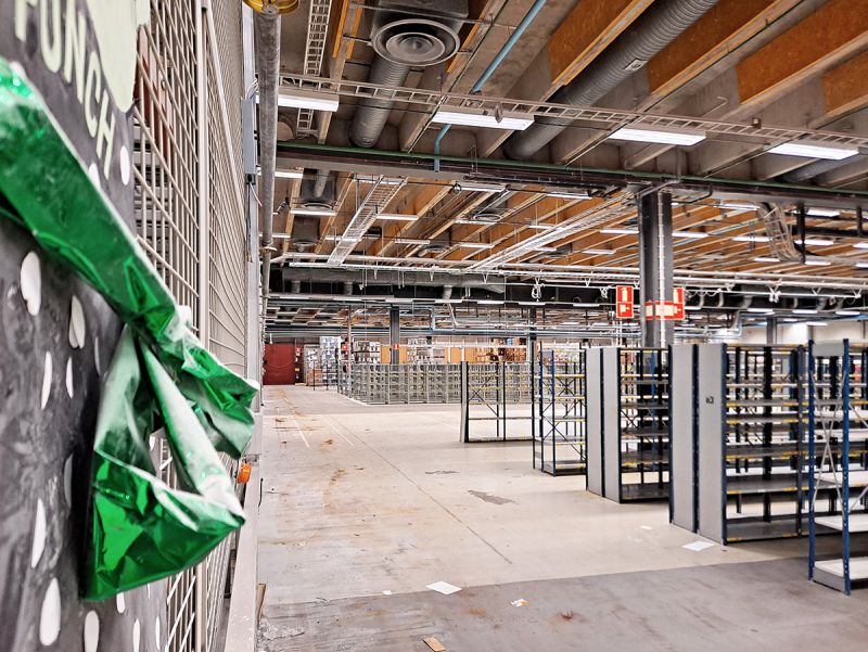 Rakennuksessa on vuokrattavana myös korkeaa teollisuushallitilaa kuormalavahyllyjen kera. katso tästä lisää.