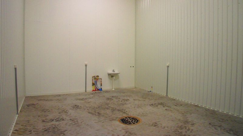 Halli on kooltaan noin 40 m². Korkeutta hallilla on noin 4,5 metriä. Tilan syvyys on noin 7,5 metriä ja leveys noin 5 metriä.