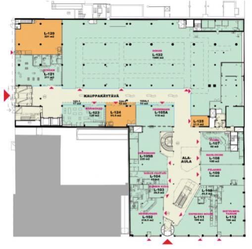 Lundin kauppakeskuksen katutason liiketila omalla sisäänkäynnillä.