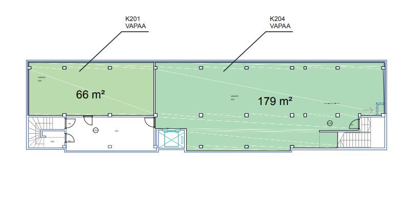 Vapaana varastotilaa eri kokoluokissa, kuten tämä 179 m2 varasto kellarikerroksessa. Ohessa kellarikerroksen pohjapiirros sekä yleiskuvia kiinteistön muista tiloista. Samassa kerroksessa vapaana myös toimistotilaa.