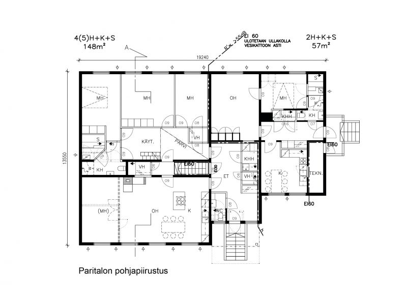 Kunto, varusteet ja palvelut: Peruskorjauskohde, lupa rakennuksen muuttamiseksi paritaloksi olemassa