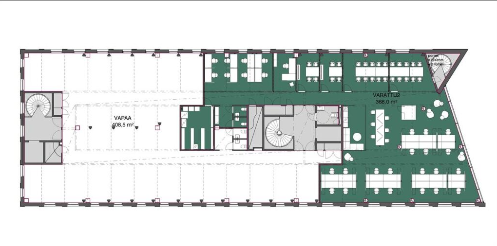 Vapaana viidennen kerroksen toimistotila Piispanportti 11 toimistotalossa.