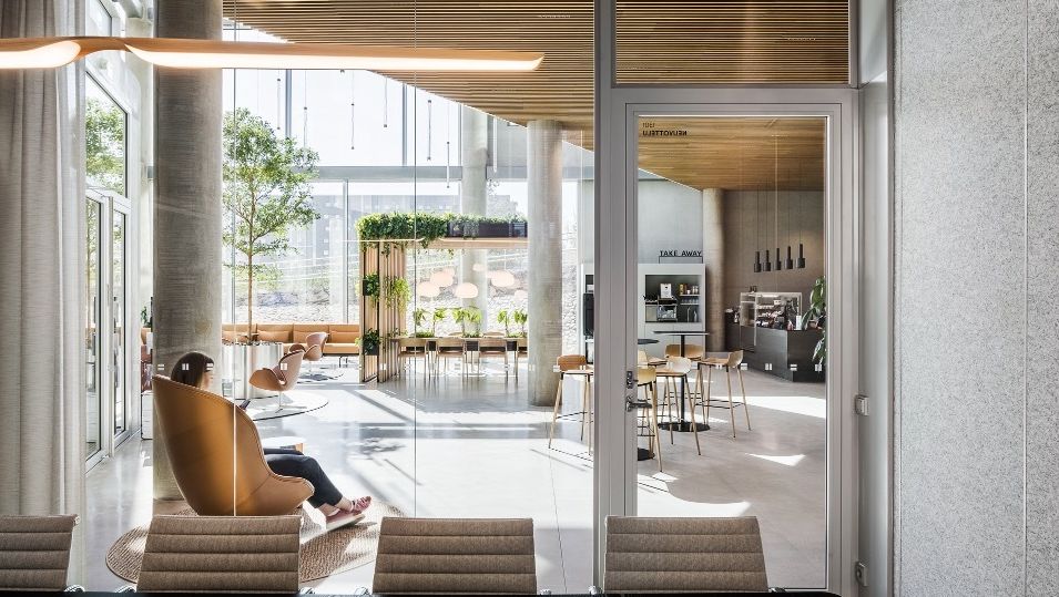 Energiatehokas, käyttöön ja tarpeeseen reagoiva valaistuksenohjaus, laadukkaat akustiikkaratkaisut, tasainen, vedoton viilennys ja optimoitu ilmanvaihto tukevat tehokasta, tuottavaa työskentelyä.