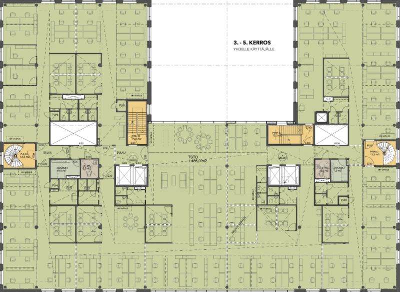 Kiinteistössä on vuokrattavaa tilaa yhteensä 8 800m2 kahdeksassa kerroksessa. Kerroskoko 1.-5. kerroksissa on n. 1 500m2 ja työpisteitä löytyy jopa noin 150 henkilölle. Kerroskoko 6.-8. kerroksissa on n. 700m2. Kerrokset on mahdollista jakaa usealle käyttäjälle. Kysy lisää eri tilavaihtoehdoista.