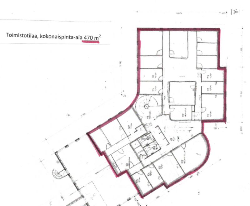 Kyseinen huoneellinen 470 m2 toimisto sijaitsee kiinteistön 2. kerroksessa. Toimistossa on avotilaa, työhuoneita, neuvottelutilaa sekä omat keittiö- ja wc-tilat. Tila on saneerattu.