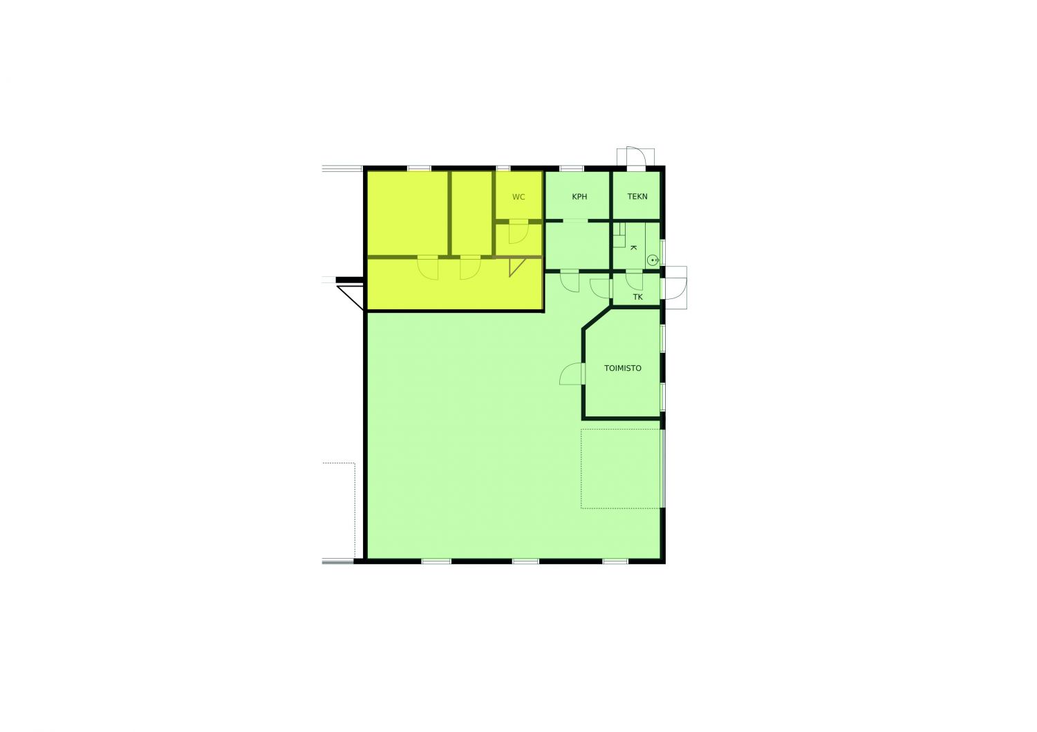 Porvoon Kevätkummussa on vuokrattavana työ- ja varastotila, jonka pinta-ala on 53 m². Tila on merkitty pohjakuvaan keltaisella värillä.