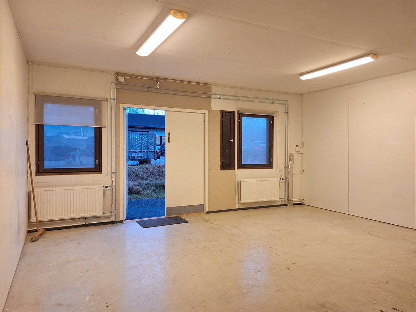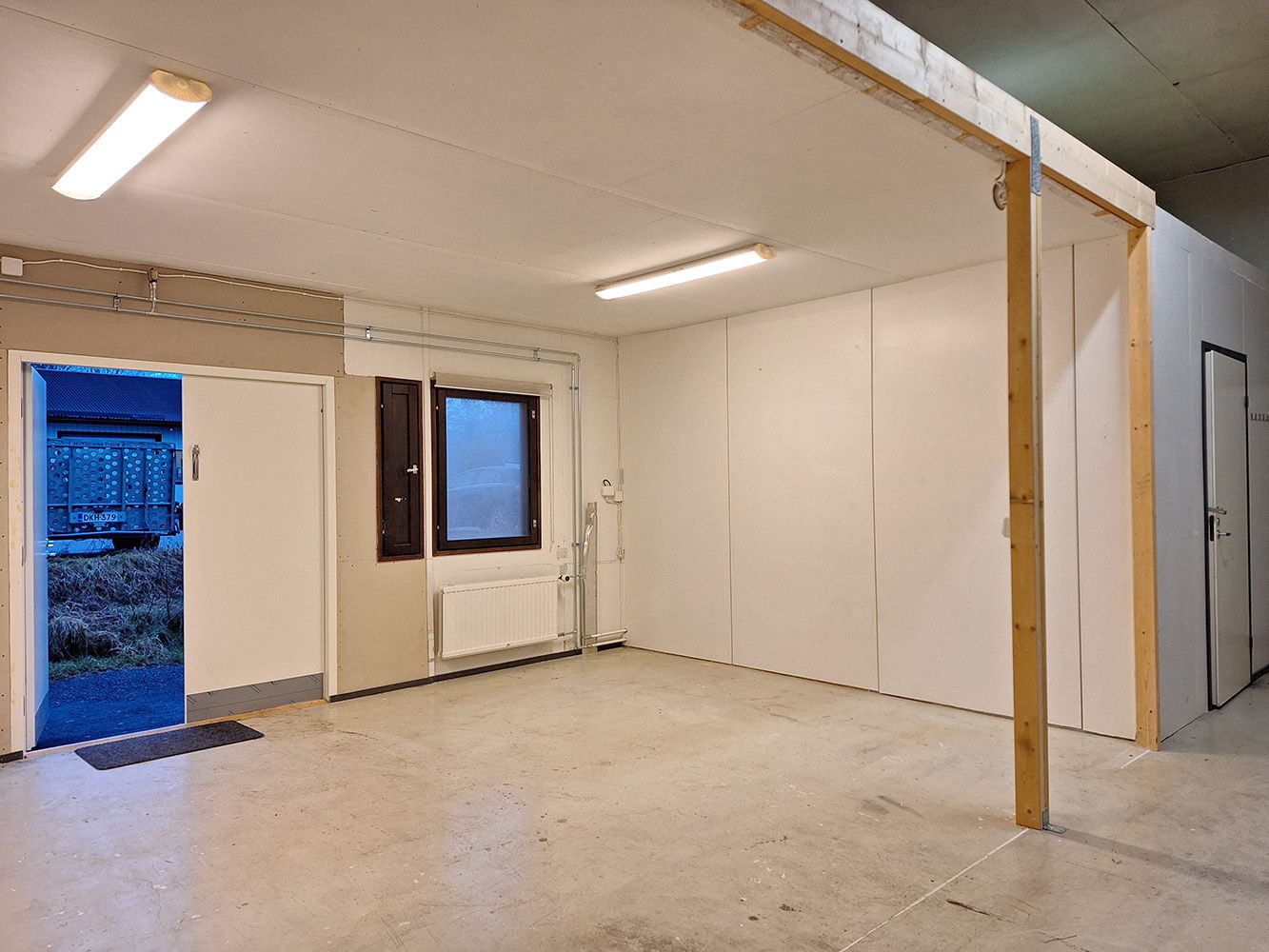 Tila on etuosasta avoin ja sisäkorkeus vaihtelee 2,5-3,5 metrin välillä (etuosassa matalampaa ja takaosassa korkeampaa). Avoimen tilan vieressä on toimistohuone pinta-alaltaan noin 11 m². . Tilaan on vaihdettu suurempi, kahden metrin levyinen lastausovi (L1,6 m x K2,0m).