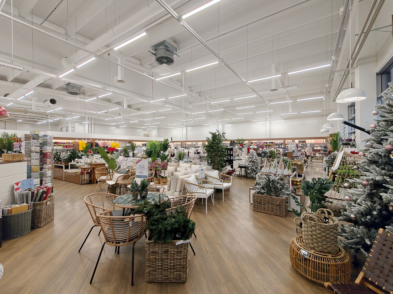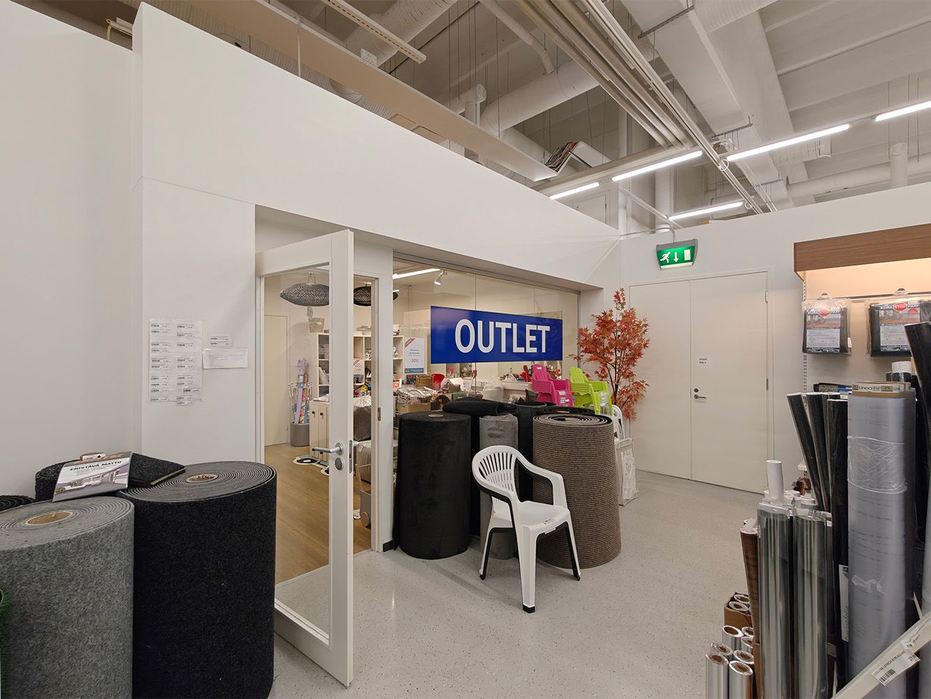 742 m²:n myymälätilaan sisältyy yhdistetty keittiönurkkaus ja toimistohuone, wc ja tuulikaappi. Tila on merkitty pohjakuvaan vihreällä värillä. Isot ikkunat tekevät tilasta valoisan. Rakennuksen ulkoseinään (pohjoispuolelle) mahdollisuus asennuttaa nosto-ovi. Tarvittavista muutostöistä sovittava erikseen.