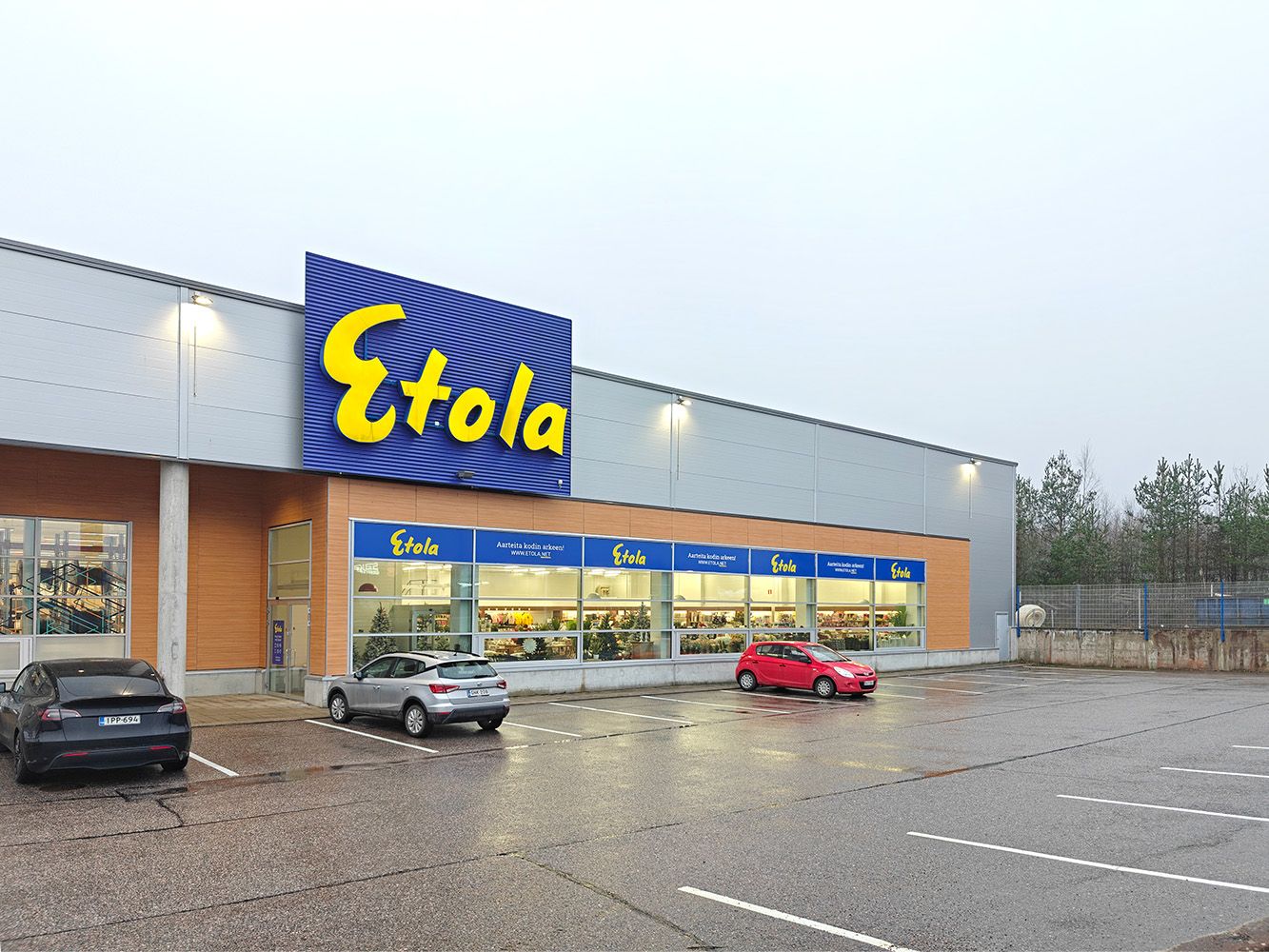 Pinta-alat: Liiketila 742 m² sekä yhteiskäyttöiset sosiaali- ja varastotilat 33 m²