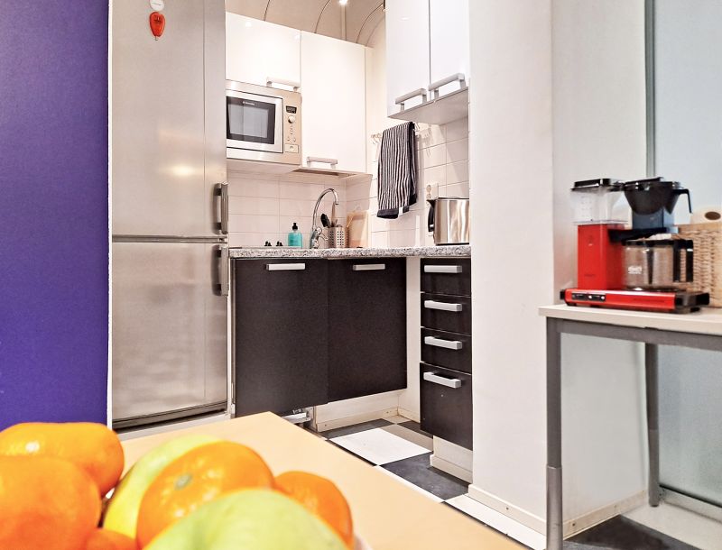 Huoneistoon on kadulta kaksi sisäänkäyntiä, joissa molemmissa on tuulikaappi.