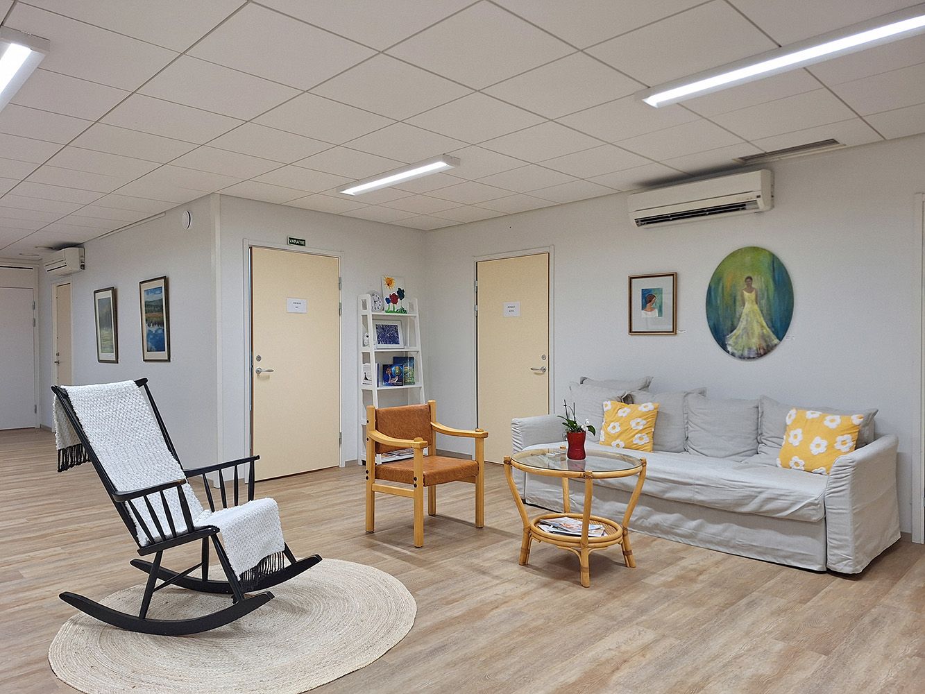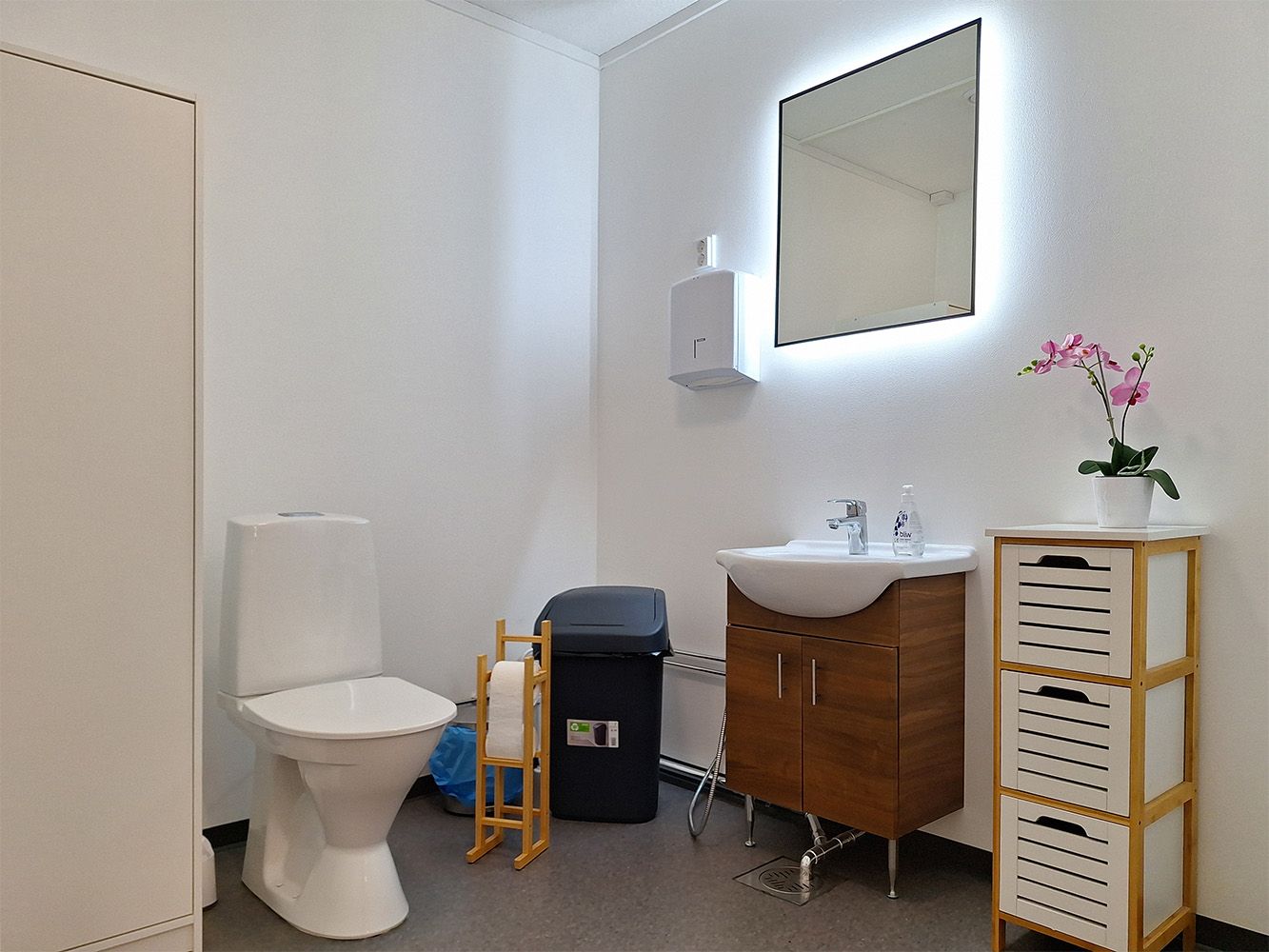 Toimistohuoneiden lisäksi rakennuksessa on tyylikäs, pieni keittiö, kaksi wc:tä, pukutila ja suihku sekä heti sisääntulosta aukeava, avara aula. Nämä tilat ovat vuokralaisten yhteiskäytössä.
