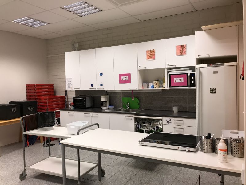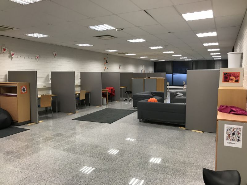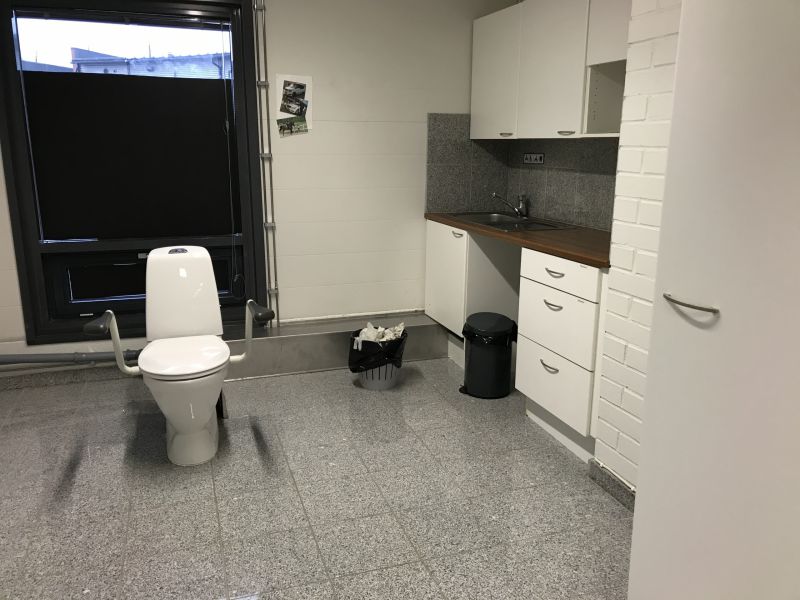 Tilassa tauko-/keittiötila, wc, asiakas wc, sos. tilat ym.