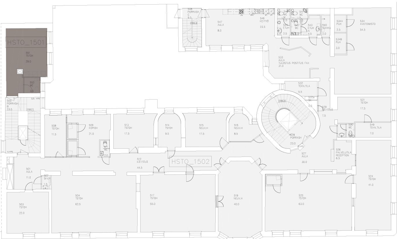 Vuokrattavana 5. kerroksen pieni, yhden huoneen toimistotila. Tilassa on oma keittiö ja wc-tila. Tilaan sisäänkäynti Rikhardinkadun puolelta.