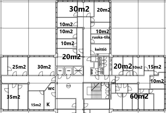 30m² 490€, 35m² 560€, 60m² 900€. Hintoihin lisätään alv 24%.