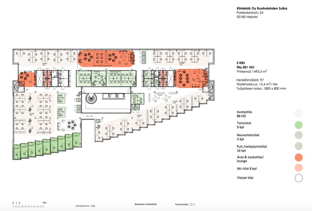 Tämä 1493,5m2 toimistotila sijaitsee kiinteistön 3. kerroksessa. Toimistossa on sekä huoneita että avotilaa. Toimistosta on näkymät Porkkalankadun suuntaan. Tilat tullaan räätälöimään vuokralaisen tarpeiden mukaan.