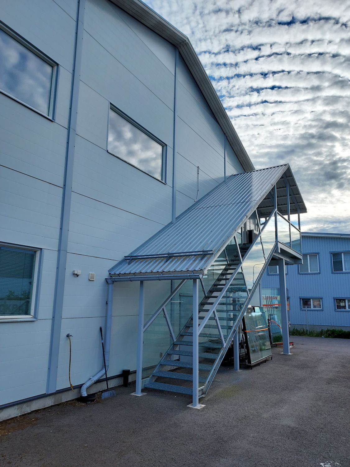 Tila 2. krs, käynti katetusta ulkoportaista.