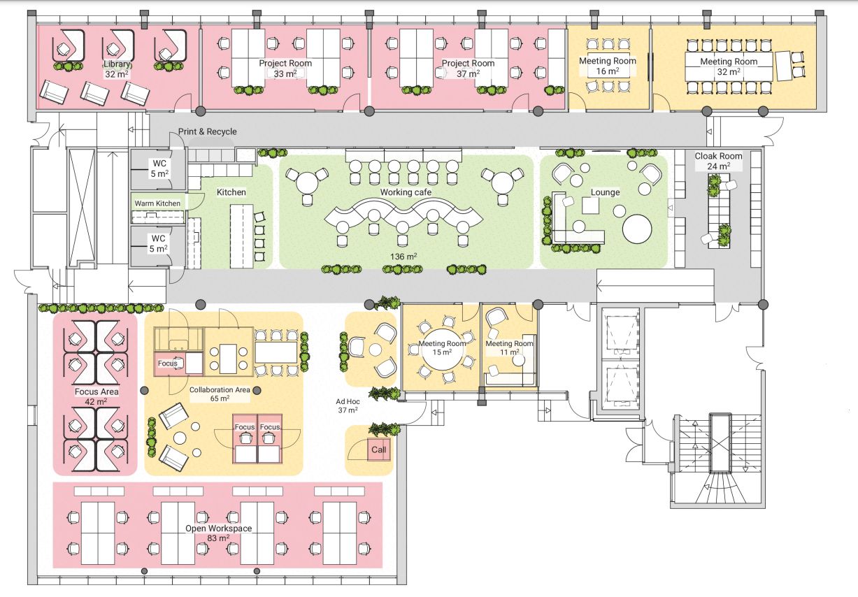 Vuokrattavana ensimmäisen kerroksen avaraa toimistotilaa, joka soveltuu myös näyttelytilaksi. Tilaratkaisu muokattavissa toiveiden mukaan. Huonekorkeus keskialueella on n. 3 m, sisäpihan puolen laajemmalla alueella n. 2,7 m.