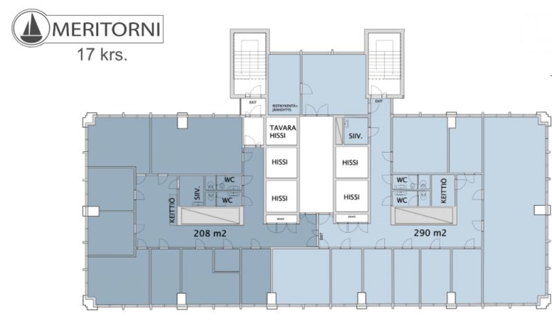 Tämä toimistotila on kooltaan n. 498m2 ja se kattaa kiinteistön 17. kerroksen. Tila on yhdistelmä sekä avo- että huonetoimistoa. Kerros on mahdollista jakaa 208m2 ja 290m2 osiin. Molemmilla puolilla on omat wc- ja keittiötilat. Toimistosta on hienot näkymät sekä merelle että kaupungille. Tila on pintaremontoitu ja siistissä kunnossa.
