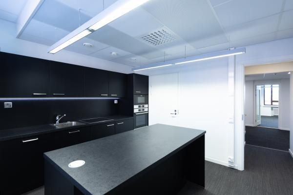 Rakennuksen 5. kerroksessa sijaitseva moderni
