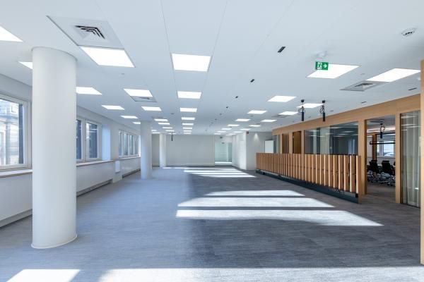Vapautuva edustava toimistotila 642m2, joka liitettävissä, juuri saneerattuun 488m2 toimistokokonaisuuteen.