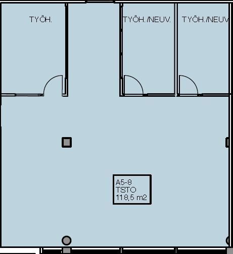 Kyseinen 117 m2 toimistotila sijaitsee A-talon 5. kerroksessa. Toimistossa on avotilaa ja kolme huonetta. Keittiö- ja wc-tilat ovat kerroksen vuokralaisten yhteiskäytössä. Toimiston pinta-alaan lisätään vielä 30,5m2 jyvitykset eli osuus kerroksen yhteiskäyttöisistä tiloista. Kuvat ovat yleiskuvia kiinteistön tiloista.