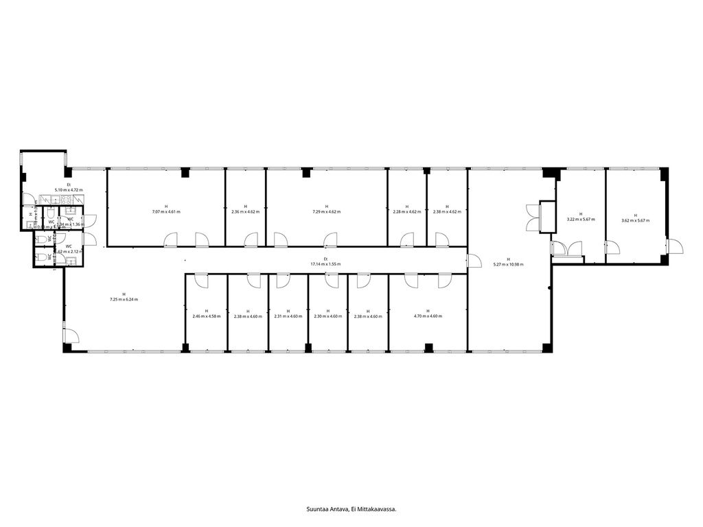 Tämä 370 m² toimisto sijaitsee kiinteistön 2. kerroksessa. Tilassa on 13 huonetta, neuvottelutila sekä taukotila. Tilassa huonekohtainen ilmastointi. Toimiston lattia remontoidaan vuokralaisen toiveiden mukaisesti. Huonejakoon on myös helppoa tehdä muutoksia.