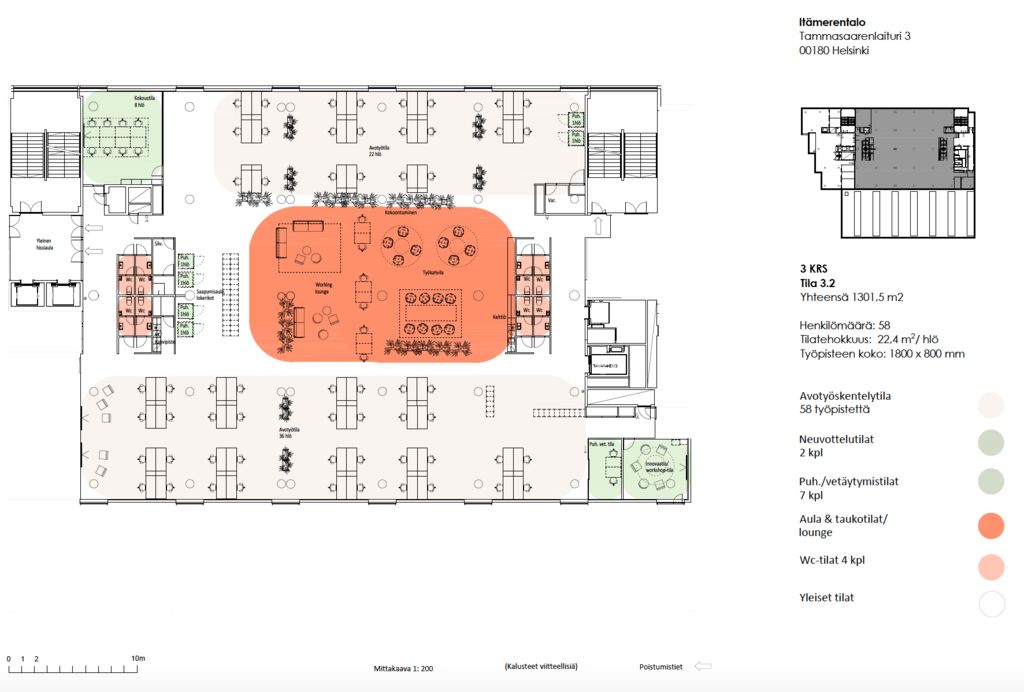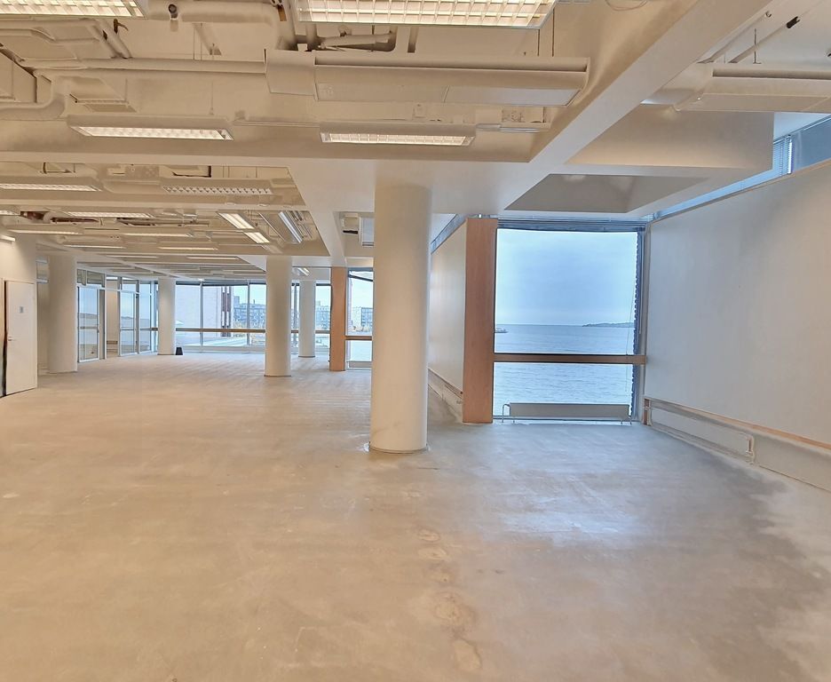 Tämä 1300m2 on avara ja se sopii hyvin luovan alan toimijalle avokonttoriksi tai showroomiksi. Tila sijaitsee kiinteistön 3. kerroksessa, ja sieltä on hienot merimaisemat. Toimisto räätälöidään vuokralaisen tarpeiden mukaan.