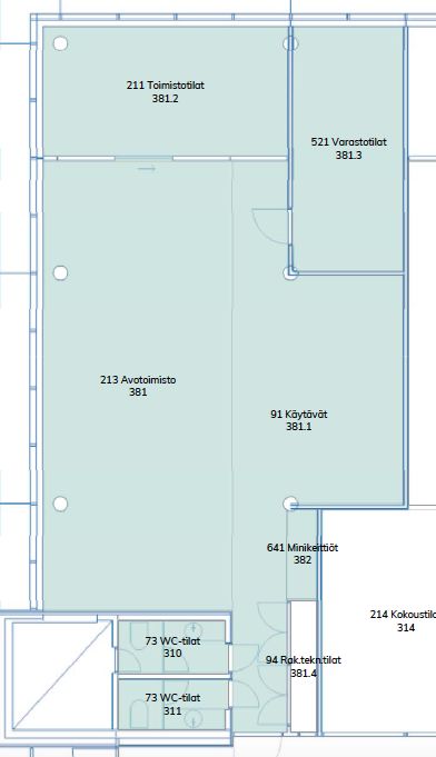 Tämä 124 m² toimistotila sijaitsee kiinteistön 3. kerroksessa. Toimistossa on avotilaa, yksi työ-/neuvotteluhuone, varasto sekä oma minikeittiö ja kaksi wc:tä.