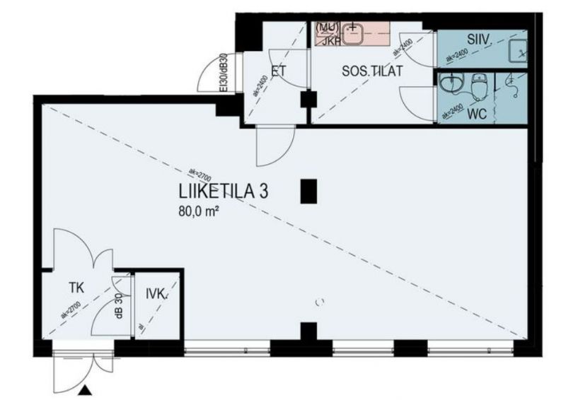 Liiketila ei sovellu ravintola- tai kahvilatoimintaan. This premise is not suitable for a restaurant or a cafeteria.