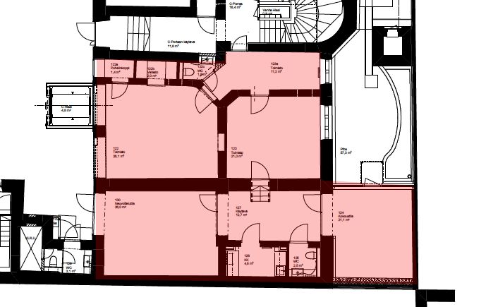 Tämä 133m2 laadukas toimistotila sijaitsee kiinteistön katutasossa. Tila on huoneellinen, ja siihen kuuluu oma pieni sisäpiha, keittiö ja wc-tilat.