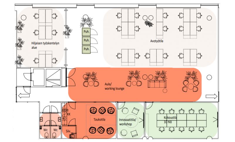 Tilat räätälöidään vuokralaisen tarpeen mukaan.