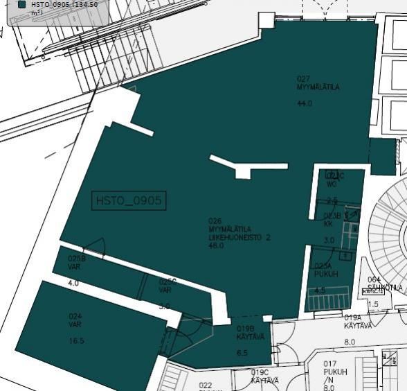 Liiketila pohjakerroksessa, sisäänkäynti tilaan vilkkaalta metrokäytävältä.