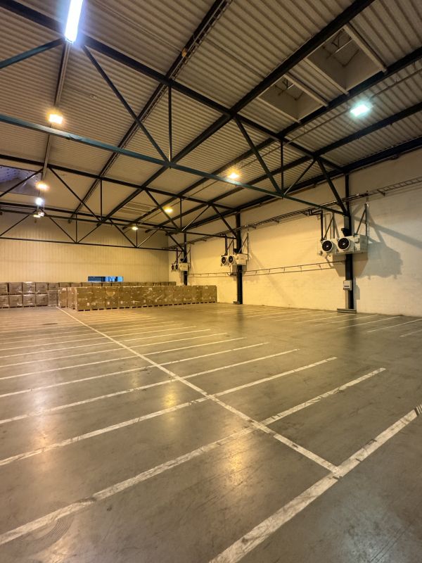 –Lohko 1, 2100m² Hallikorkeus 9m, korkeus kattotuoliin 6m. Maatasossa nosto–ovi 6mx6m sekä 3 lastauslaituria. Tilassa myös kylmäkoneet mahdolliseen viileä varastointiin.