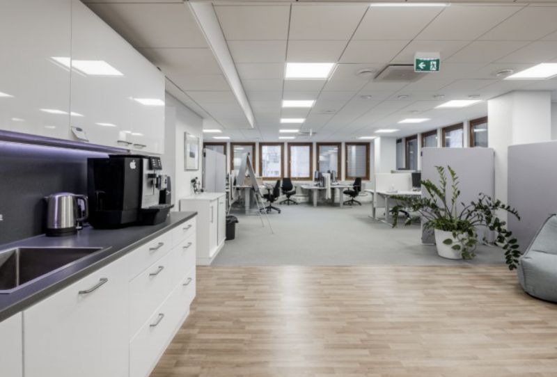 Kaivotalon 6. kerroksen vasta remontoitu toimisto josta on loistavat näkymät Helsingin päärautatieasemalle. Toimistossa on nykyjaolla;