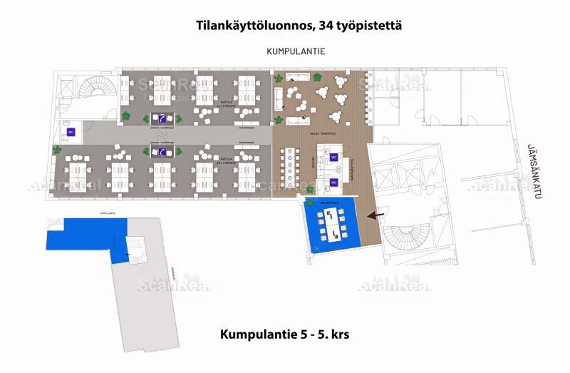 Perussiisti toimistotila viihtyisässä Vallilan Pikselissä kehittyvällä toimistoalueella.