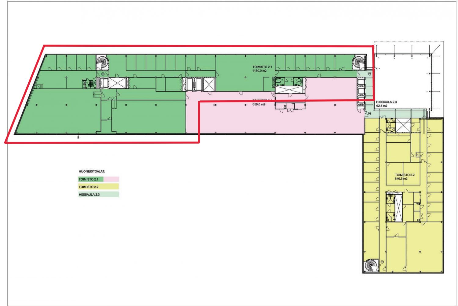 Vuokrataan 1340 m2 toimistotila kiinteistön 2. kerroksesta.
