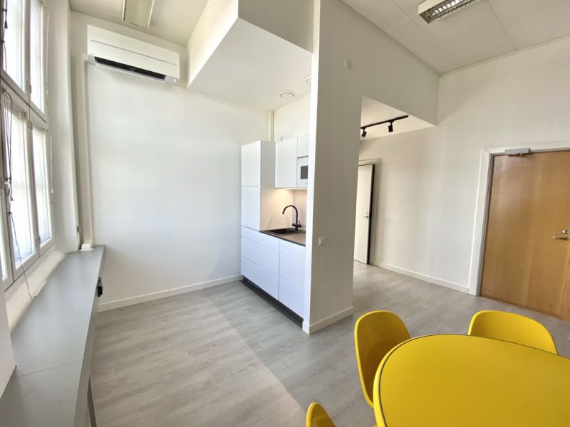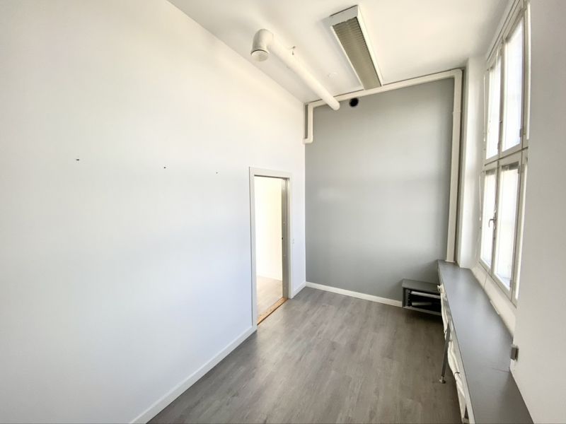 Persoonallinen, valoisa ja edustava loft-tyyppinen toimitila toimistoksi, studioksi, koulutustilaksi, työpajaksi tms. Mukautuva tila moneen käyttöön. Tilassa kolme suurta tehdasikkunaa. Huonekorkeus n. 3,5 metriä. Huoneiston välittömässä läheisyydessä henkilöhissi. Tilaan pääsy rapuista A, B ja D.