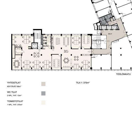 Tämä 370m2 toimistotila sijaitsee kiinteistön 4. kerroksessa. Toimistossa on huoneita, avotilaa sekä omat keittiö- ja wc-tilat. Kuvat ovat yleiskuvia kiinteistön remontoiduista tiloista.